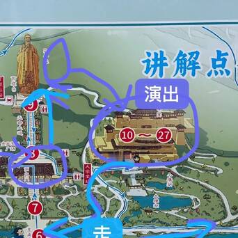 下午来时间完全够,用不着一天。下午3点到达后,我看天气太晒买了20元的摆渡车➕步行结合规划起来就挺好,请见图3我推荐的路线(这些都是自己问出来的,景区指导很有限!)大孔子+大学堂感受一下仁义礼智信五个厅,看个《金声玉振》演出后看个烟花水幕表演,就可以往回走坐摆渡车回到游客中心了。(回程要先去图13的汇合点1,乘坐图14的黄色巴士到停车场,找到白天送你过来的车回市区里。客运公司会拉微信群。演出往回走基本上来得及提前15-20分钟上车。